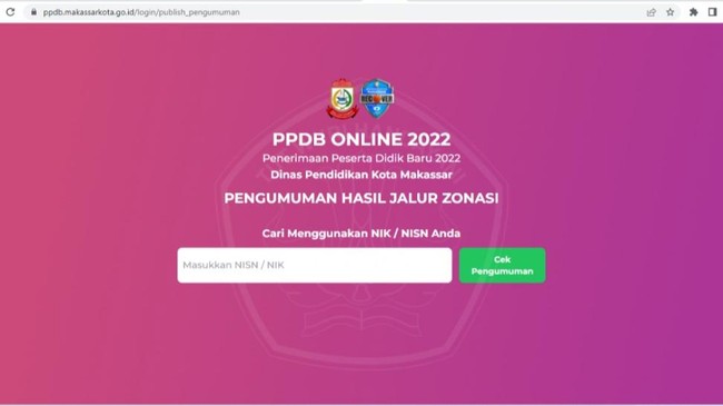 "Jadi sudah bisa dicek itu. (Masukkan) nomor induk nasional atau NIK. Itu sudah langsung keluar itu apakah dia dinyatakan diterima atau tidak," tutur Kepala Dinas Pendidikan (Disdik) Makassar Muhyiddin kepada detikSulsel, Rabu (29/6/2022).