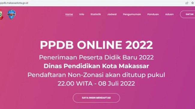 Pendaftaran seleksi penerimaan peserta didik baru (PPDB) Makassar 2022 jenjang SD/SMP untuk penerimaan jalur non zonasi sudah dibuka. Hasil seleksi calon peserta didik akan diumumkan besok.