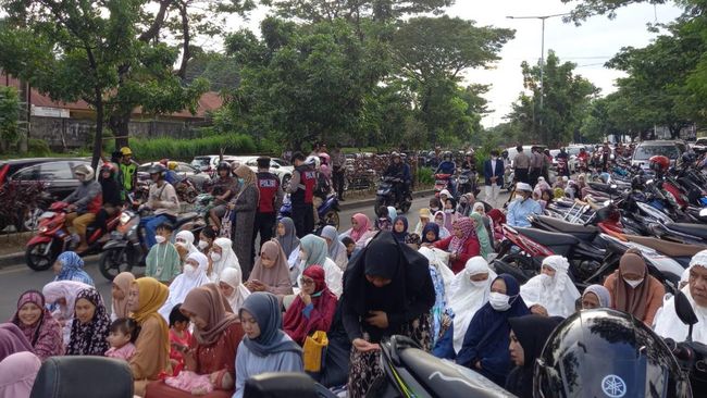 Longgarnya peraturan pelaksanaan salat Idul Adha membuat jemaah dengan cepat memenuhi pelataran kantor. Tidak cukup 30 menit, jemaah mulai menggelar sejadah di pinggir jalan.