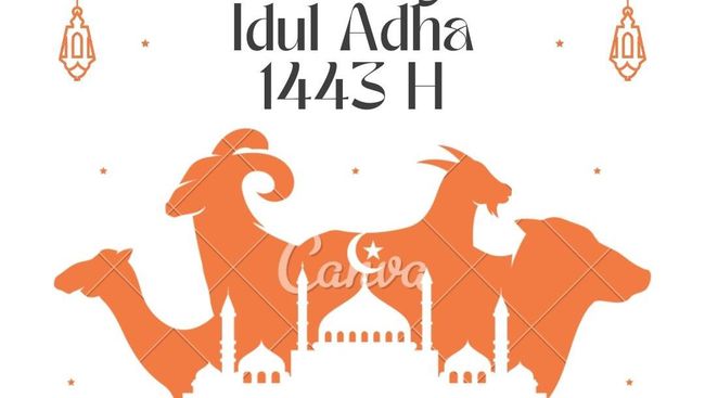Artinya: Selamat hari raya Idul Adha 1443 H. Semoga di hari raya kurban ini semua sifat-sifat kebinatangan kita dihilangkan sehingga kita bisa saling mengingatkan dan saling menghormati.
