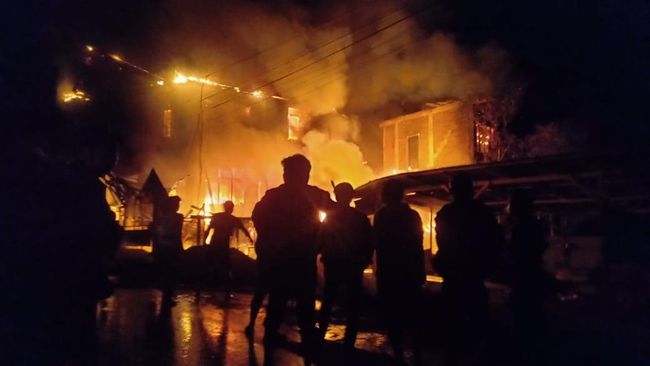 "Dugaan sementara dari korsleting listrik. Apinya langsung membesar karena bangunan strukturnya kayu, kemudian langsung menjalar ke rumah di dekatnya. Ya mungkin sekitar sejam baru kita bisa padamkan apinya," ungkap Iwanto.