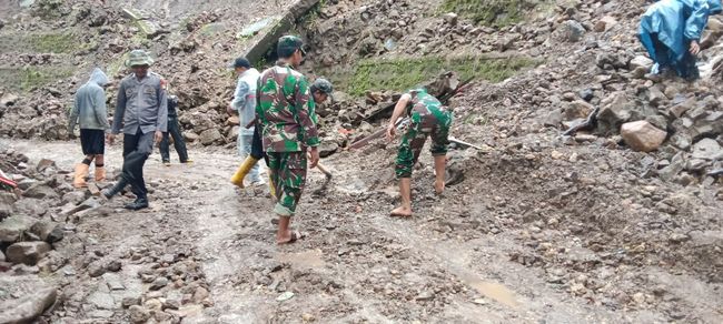 Raja menuturkan, pihaknya telah mengerahkan anggota Koramil ke titik longsor untuk melakukan penanganan longsor tersebut. Juga dibantu oleh warga setempat dan anggota kepolisian. Mereka membantu membuka akses dengan menggunakan cangkul dan sekop.