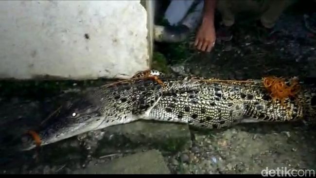 "Buaya masuk ke dalam parit jadi ditangkap," kata salah satu warga, Leni kepada wartawan, Senin (25/7/2022).