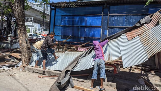 Pantauan detikSulsel di Jalan Pelita Raya, Kecamatan Rappocini, Makassar pada Rabu (3/8/2022), tampak petugas mulai mengangkut material lapak pedagang yang dibongkar ke dalam mobil sekitar pukul 12.45 Wita. Ada 3 mobil truk dan 1 mobil pikap yang standby di lokasi.