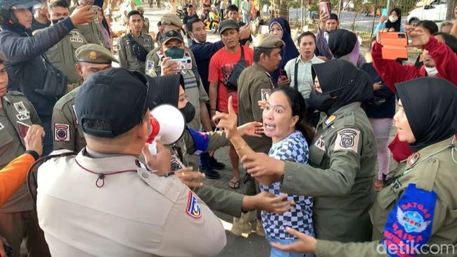 Penertiban pedagang kaki lima (PKL) di kawasan Pantai Losari, Kota Makassar, Sulawesi Selatan (Sulsel) sempat diwarnai kericuhan. Pedagang menolak lapak dagangannya digeser beberapa meter.