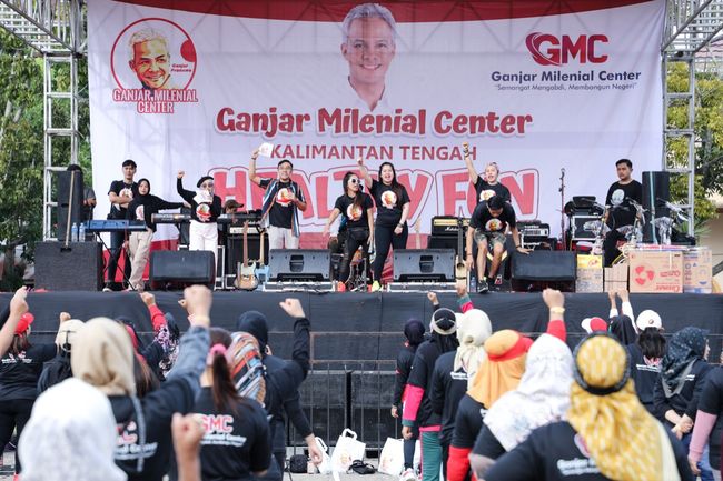Para pemuda yang tergabung dalam Ganjar Milenial Center (GMC) Kalimantan Tengah (Kalteng) menunjukkan dukungan untuk sosok Ganjar Pranowo. GMC Kalteng terdiri dari sekumpulan anak muda, milenial, hingga mahasiswa yang menyatukan suara untuk mendeklarasikan Ganjar sebagai bakal calon Presiden RI pada 2024.