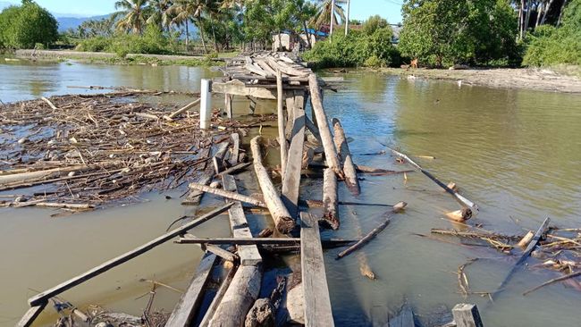 "Iya terputus karena banjir dan air laut pasang, kebetulan dekat muara juga ini lokasi jembatan. 4 dusun sekarang sulit aksesnya ke kantor desa," kata Kepala Desa Bonda Abd Wahab saat dikonfirmasi, Minggu (14/8/2022).