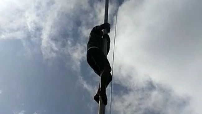 Dalam video beredar, Yayan tiba-tiba saja muncul dari sela-sela barisan peserta upacara yang mengenakan seragam pramuka. Tanpa basa basi ia melepaskan sepatunya dan naik memanjat tiang bendera yang tingginya kurang lebih 15 meter.