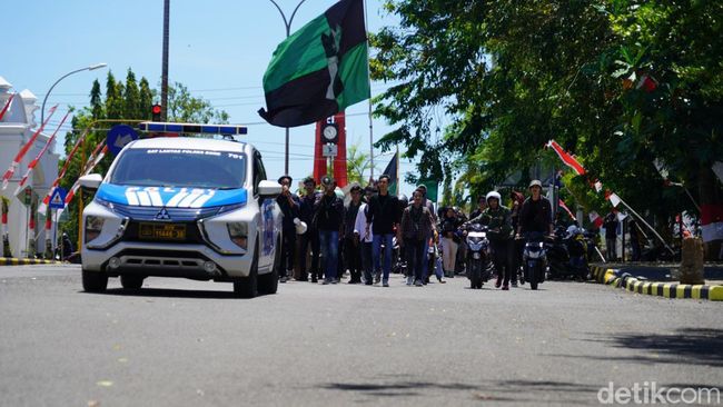 Pantauan detikSulsel, massa aksi awalnya melakukan orasi di Bundaran Lapangan Merdeka Watampone, Rabu (31/8/2022). Sekitar pukul 11.30 Wita massa sudah melaksanakan long march menuju DPRD Bone.