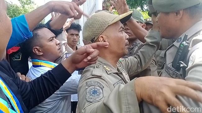 "Tadi itu ada dinamika goyang-goyang pagar. Setelah dibuka pagar, ada oknum Satpol PP yang datang menggertak kita oleh karena itu kita tidak terima, dia gertak coba masuk, ajak duel," kata Pengurus PMII Cabang Ambon, M Zulfani Narahaubun, Senin (5/9/2022).