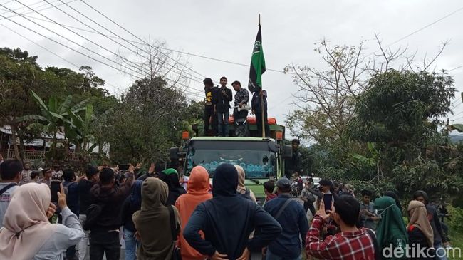 Pantauan detikSulsel di lokasi, Sabtu (5/9/2022), unjuk rasa dimulai sekitar pukul 13.00 Wita. Peserta aksi lantas menyandera sebuah truk yang melintas. Massa kemudian menggelar orasi di atas truk tersebut.