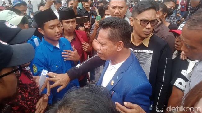 Wakil Ketua DPRD Kendari, Jumardin terlihat datang menemui massa aksi yang memaksa masuk. Jumardin tampak berusaha menenangkan massa hingga nada suaranya mulai meninggi dan membuka kancing jasnya.