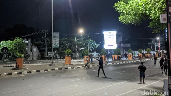 Namun petugas kepolisian dan sejumlah warga langsung mengamankan motor yang dirusak tersebut. Sementara massa aksi dan kelompok OTK tersebut saat ini masih terus saling balas lemparan batu.