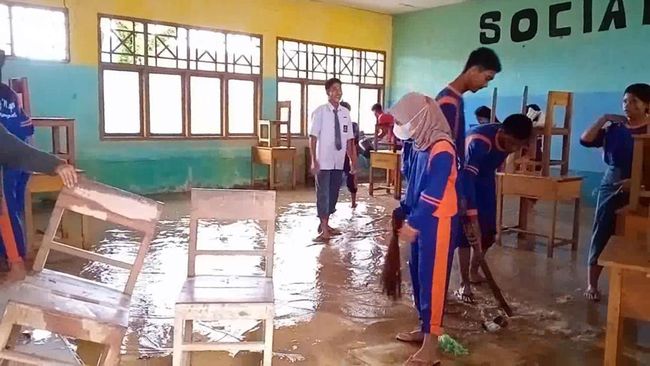 "Sejauh ini ada sekitar lima kelas yang memang rusak parah, banyak kursi dan meja yang rusak, kondisi penuh lumpur dan sampah. Barang elektronik sejauh ini sound system di kantor, ruang guru, itu juga ada masalah, termasuk berkas penting," bebernya.