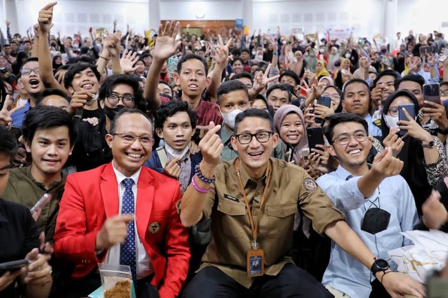 Menteri Pariwisata dan Ekonomi Kreatif (Menparekraf) Sandiaga Uno mengatakan mahasiswa juga mampu menciptakan lapangan pekerjaan dengan berwirausaha. Hal ini dinilai dari produk-produk yang berinovasi serta kreatif.