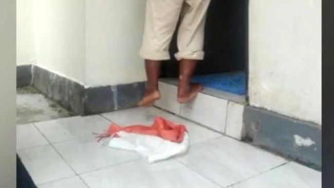 Dalam video beredar, tampak selembar kain menyerupai bendera Merah Putih yang diletakkan di depan pintu dan dijadikan sebagai keset kaki oleh seorang pria. Penampakan itu lantas menjadi tontonan warga.