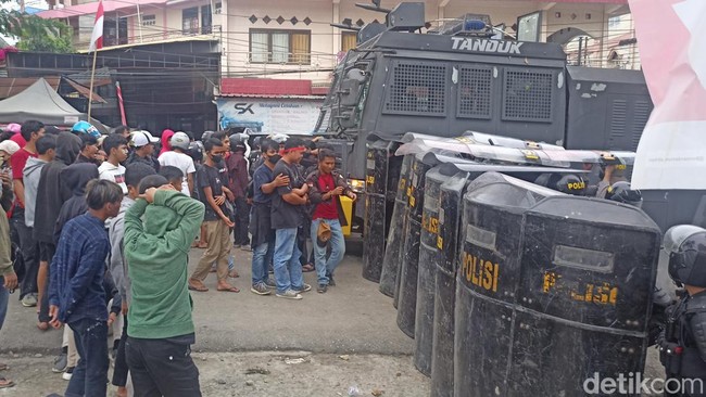 Demo sidang sengketa lahan di Toraja Utara (Torut), Sulawesi Selatan (Sulsel) kembali ricuh usai bentrokan antara massa aksi dengan polisi setelah putusan sidang diumumkan. Akibatnya ada 30 mahasiswa diamankan imbas bentrokan tersebut.