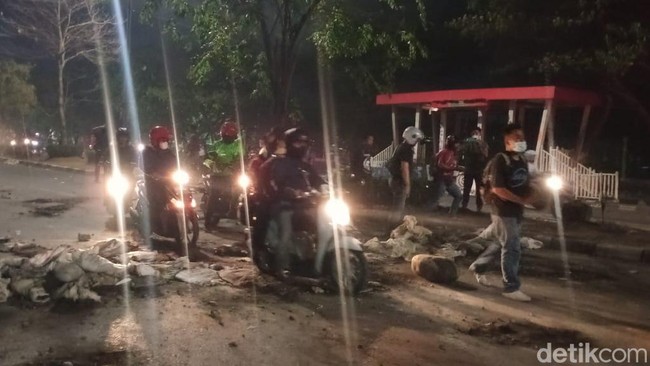 Petugas dan pengendara yang sempat membuka jalur terpaksa mundur akibat lemparan tersebut. Atas insiden itu petugas yang sempat menyisir lokasi demo, mengamankan satu orang tak dikenal (OTK) yang diduga melakukan pelemparan.