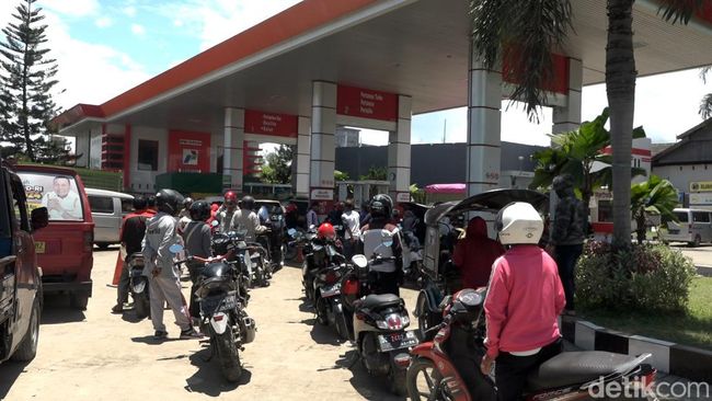 Pantauan detikcom, Kamis (22/9/2022), terlihat sejumlah kendaraan harus mengantre lama untuk menunggu giliran mengisi BBM pada salah satu SPBU di Kecamatan Wonomulyo, Polman, Sulbar. Para pemilik kendaraan terpaksa harus menunggu lama lantaran proses pengisian BBM menggunakan QR Code berulang kali terhenti karena gangguan jaringan.