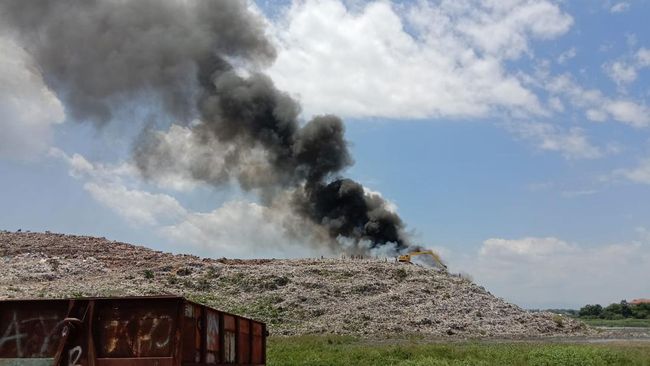 Kebakaran melanda Tempat Pembuangan Akhir (TPA) Antang, Makassar, Sulawesi Selatan (Sulsel). Saat ini petugas pemadam kebakaran (damkar) sedang berada di lokasi untuk melakukan pemadaman.