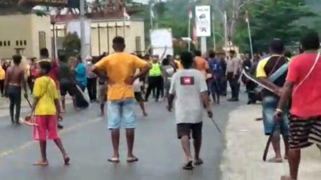 Dalam video yang dilihat detikcom, sejumlah warga tampak berkumpul di jalan. Beberapa orang terlihat sedang berjalan kaki sambil memegang golok di tangannya.