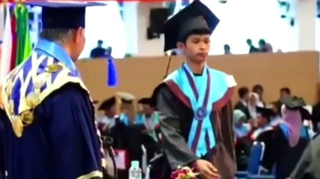 Dalam video beredar, tampak sekitar empat wisudawan secara bergantian membungkuk dengan memberi hormat kepada rektor. Keempat wisudawan itu terlihat senyum sumringah.