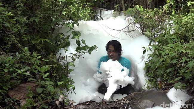Pantauan detikcom di lokasi, gumpalan mirip busa ini terlihat menutupi permukaan anak sungai sepanjang 200 meter dengan lebar 1 meter. Gumpalan mirip busa ini terasa lengket saat menyentuh kulit.