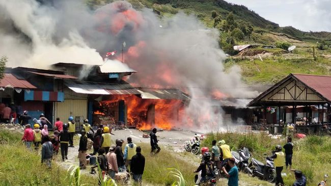 Kebakaran terjadi di Pasar Lama Kota Baru, Kampung Lunggwiner, Distrik Pagaleme, Kabupaten Puncak Jaya, Papua. Kobaran api menghanguskan sedikitnya 17 kios dan 7 ruko.