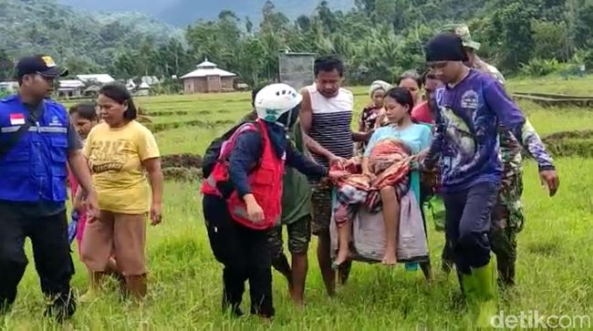 Pantauan detikcom di lokasi, Minggu (16/10/2022), ibu Nosi ditandu sejumlah warga dengan cara didudukkan di atas kursi. Dia kemudian diangkat menggunakan kain sarung.