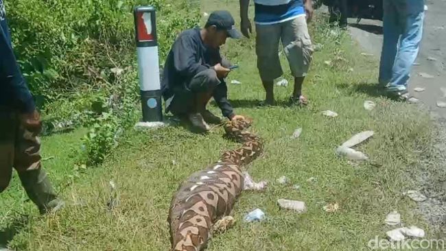 Sebelumnya, warga di Enrekang geger dengan penemuan ular piton sepanjang 7 meter. Ular tersebut ditangkap usai memangsa anak sapi milik warga.