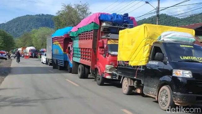 Pantauan detikSulsel di lokasi, Selasa (18/10/2022), tampak kendaraan yang didominasi truk berjejer di pinggir jalan. Kendaraan mengular hingga 7 kilometer dari arah Kelurahan Balandai ke Kelurahan Buntu Datu.