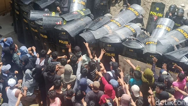 Proses eksekusi lahan sengketa yang lokasinya dekat dengan Pasar Baraka ini dikawal 2 SSK Brimob Batalyon B Pelopor, Selasa (18/10/2022). Namun ratusan warga kemudian menghalangi petugas melakukan pengamanan eksekusi, hingga bentrokan tidak terhindarkan.