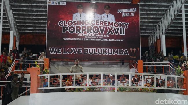 "Selamat kepada ketiga juara. Dan selamat kepada Makassar yang keluar sebagai juara umum," kata Sekretaris Koni Sulsel, Mujiburrahman dalam sambutannya saat penutupan Porprov Sulsel 2022 di Stadion Mini Bulukumba, Minggu (30/10/2022)