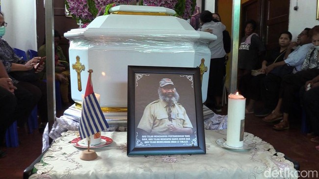 "Sejak pukul 11.00 WIT proses pemakaman akan dimulai, yakni ibadah dan kemudian akan diberikan kepada keluarga, dewan adat papua serta para aktivis seperjuangannya untuk memberikan sambutan pelepasan," katanya.