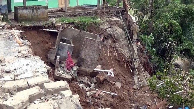 "Dua yang terdampak, satu (rumah) yang parah karena sudah tergantung tiangnya," pungkasnya.