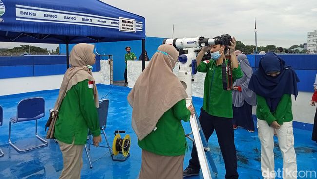 Pantauan detikSulsel di Kantor BMKG Makassar, Jalan Prof Abdurrahman Basalamah, Selasa (8/11/2022) tim pemantau mulai bersiap melakukan pemantauan pukul 16.50 Wita. Mereka tampak mengenakan rompi hijau.