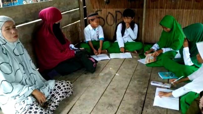 Hal ini membuat sekitar 140 santri tingkatan TK hingga SMP serta 10 orang tenaga pengajar terpaksa menumpang di kolong rumah dan pos kamling untuk melakukan aktivitas belajar mengajar.
