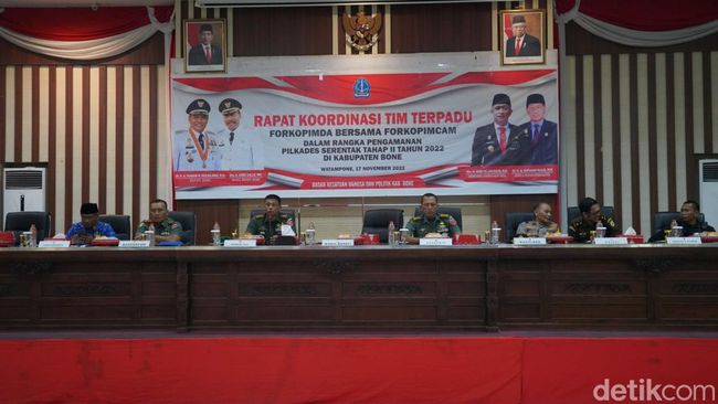 "Tensi pilkades sekarang lebih tinggi karena dihadapkan tahun politik 2024. Karena seluruh proses berlangsung di tahun 2023, perlu ditingkatkan kewaspadaan lebih tinggi agar pilkades ini lebih aman," kata Wakil Bupati Bone Ambo Dalle saat memberikan sambutan dalam Rakor bersama Forkopimda dan Forkopimcam di Gedung PKK Bone, Kamis (17/11/2022).