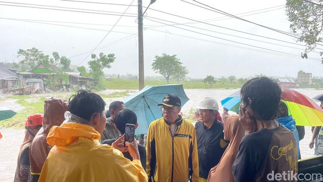 Taufan terlihat memantau sejumlah titik, termasuk proses evakuasi warga yang terdampak banjir. Menurut Taufan, banjir yang parah seperti ini hanya terjadi pada 4-5 tahun lalu.