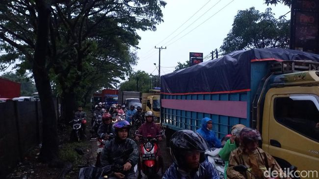 Kemacetan ini akibat banjir yang terjadi di sejumlah titik di sepanjang jalan tersebut. Pemandangan serupa juga terlihat pada ruas jalan tol yang tepat berada di samping kanan Jalan Ir Sutami.