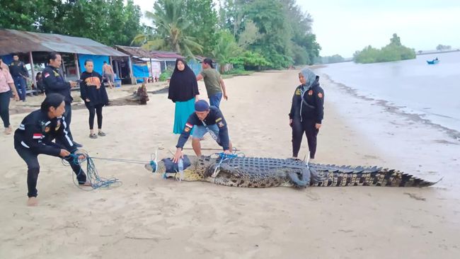 "Ya kami yang jemput ke sana (tengah laut). Dibantu pawang yang melakukan ritual, setelah itu buaya kami arak ke pinggir pantai, dan kami ikat menggunakan tali," bebernya.