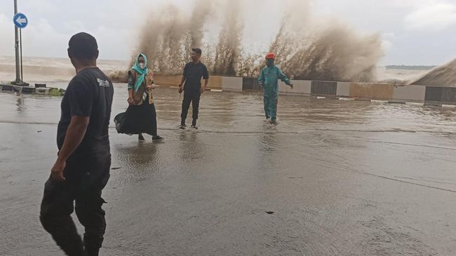 "Ini ombak di daerah sepanjang pesisir lumayan tinggi dan meluber ke jalan seperti di Jalan Mattirotasi yang memang dekat dengan laut," lanjut Erik.