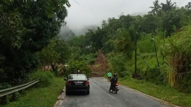 "Panjang longsor menutupi jalan mungkin hampir 20 meter. Yang pasti kendaraan tidak bisa lewat saat ini," sebutnya.