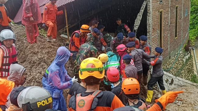 Usai menemukan satu korban yang tertimbun longsor, tim masih terus melanjutkan pencarian terhadap 4 korban lainnya.