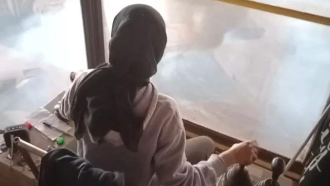 Nirwana juga terlihat tak mengucapkan sepatah kata pun. Dia hanya menatap ke arah kamera dan terus fokus mengoperasikan crane yang terbakar dari luar.