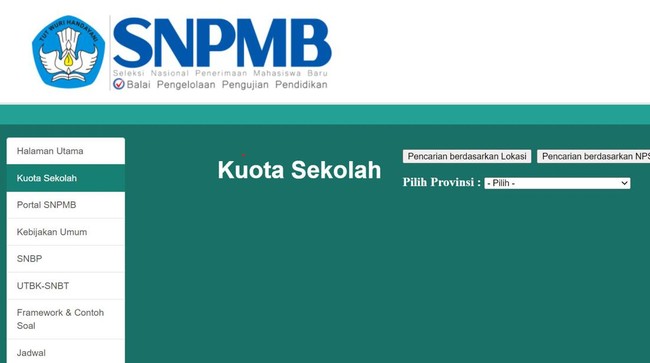 Kuota sekolah SNBP 2023 dapat dicek langsung di laman resmi Balai Pengelolaan Pengujian Pendidikan Kementerian Pendidikan dan Kebudayaan (Kemdikbud). Lebih mudahnya ikuti langkah-langkah berikut: