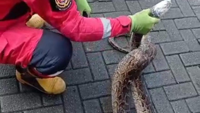 Petugas Damkar yang berjumlah 5 orang kemudian menangkap ular tersebut dengan memasukkannya ke dalam karung. Ular lalu dibawa ke kantor Damkar Makassar.