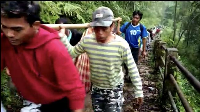 Dalam video viral yang bereda di media sosial, tampak sejumlah warga menandu seorang ibu hamil menggunakan sarung dan sebilah bambu. Kondisi jalan yang dilalui warga terlihat sempit.