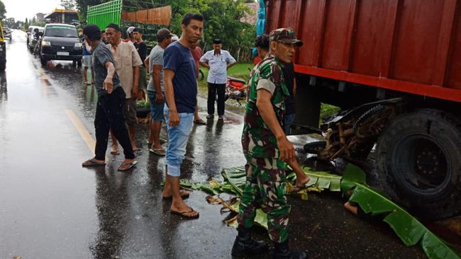 "Saat kecelakaan kondisi sedang hujan. Korban langsung menabrak truk karena tidak bisa menguasai kendaraannya," sebutnya.