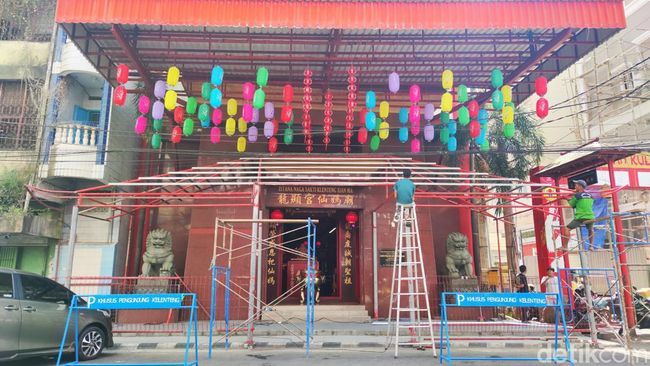 Dari pantauan detikSulsel pada Selasa (17/1/2023), sejumlah orang tengah membersihkan dan memperbaiki patung rupang dewa dewi. Tidak hanya di dalam Klenteng, pada bagian luar juga dipermak untuk menyambut Imlek.